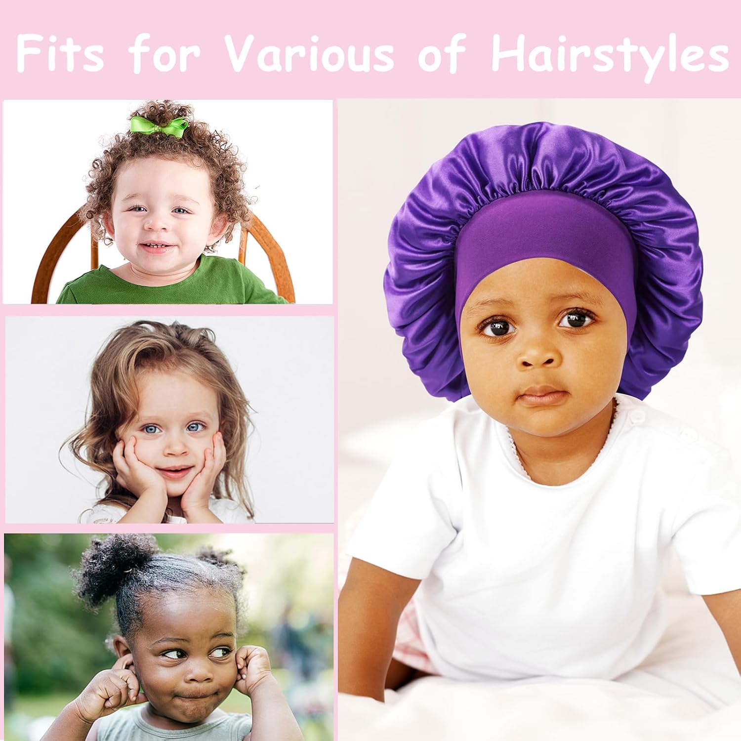Customers find these baby bonnets perfect for newborns and six-month-olds, noting they fit well, with one mentioning plenty of room for growth. Customers describe the bonnets as cute, silky, and smooth, with wonderful quality, and appreciate how they help protect babies’ hair. While some customers report the bonnets stay on well, others mention they tend to slide down over the face. The size receives mixed feedback, with some finding them perfect while others say they’re a bit big for babies younger than 4 months.