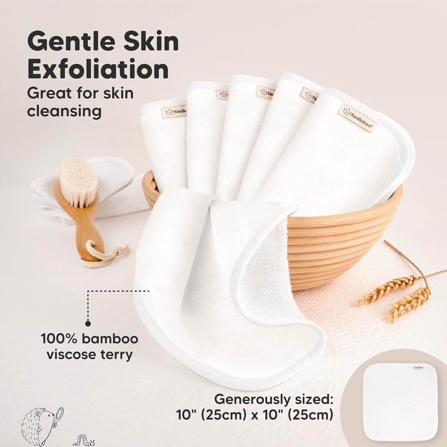 6-Pack KeaBabies Baby Wash Cloths – Sized at 10″x10″ (25x25cm), these ultra-soft, 500GSM premium viscose derived from bamboo wash cloths for babies are perfect baby bath essentials.