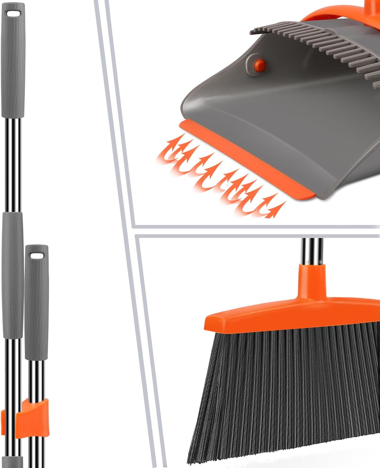 Dustpan Teeth: The dustpan built in comb teeth is easy to scrape off the hair and rubbish of thebroom bristles into dustpan, negating the need to drag by hand, making the broom and dustpan easier to clean