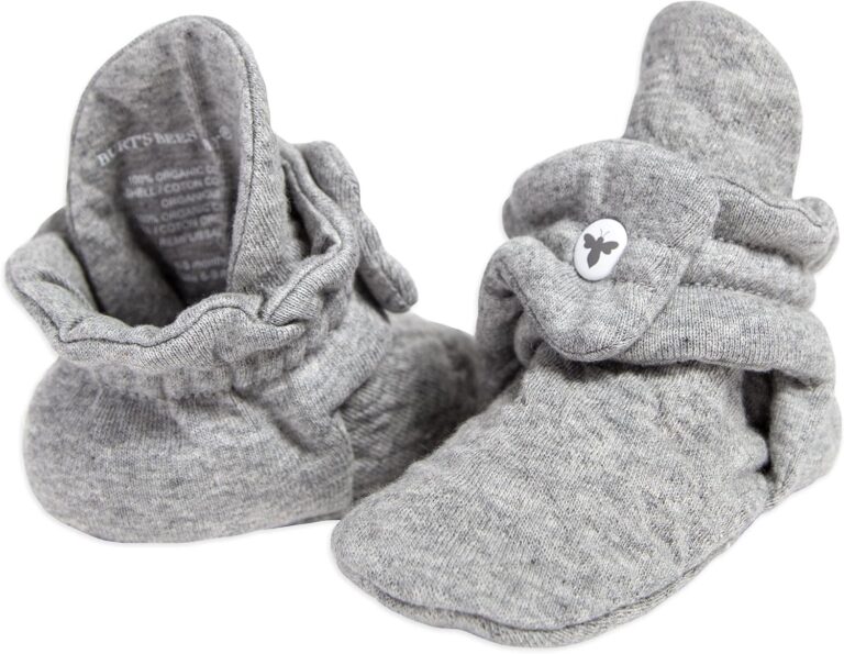Wrap your baby’s feet in the all-natural comfort of Burt’s Bees Baby Infant Booties. Fashioned from 100% organic, GOTS certified, cotton, these adjustable slipper socks offer a luxuriously soft embrace, perfect for your baby’s delicate skin. The meticulous design features tow ankle adjustment options, ensuring a snug, customizable fit for infants from 0 to 9 months. The elastic stretch is carefully designed to keep booties on your baby’s feet as they move freely. The choice of color and classic design add a delightful touch, making these booties a versatile pick for your baby boy or a baby girl’s wardrobe. These booties are durable and crafted to last, made from combed and ring-spun cotton that resists pilling and maintains softness through frequent washing—an essential quality as these little shoes journey with your baby’s growth. Securing these booties is effortless, thanks to the thoughtfully designed straps that provide a secure fit that stays on without constant readjusting. Choose these baby booties for a perfect blend of softness, style, and security, making them a heartfelt gift or a necessary addition to your collection of baby essentials. Makes for a great gift and baby registry add for new parents. *GOTS Certified by CU 831717