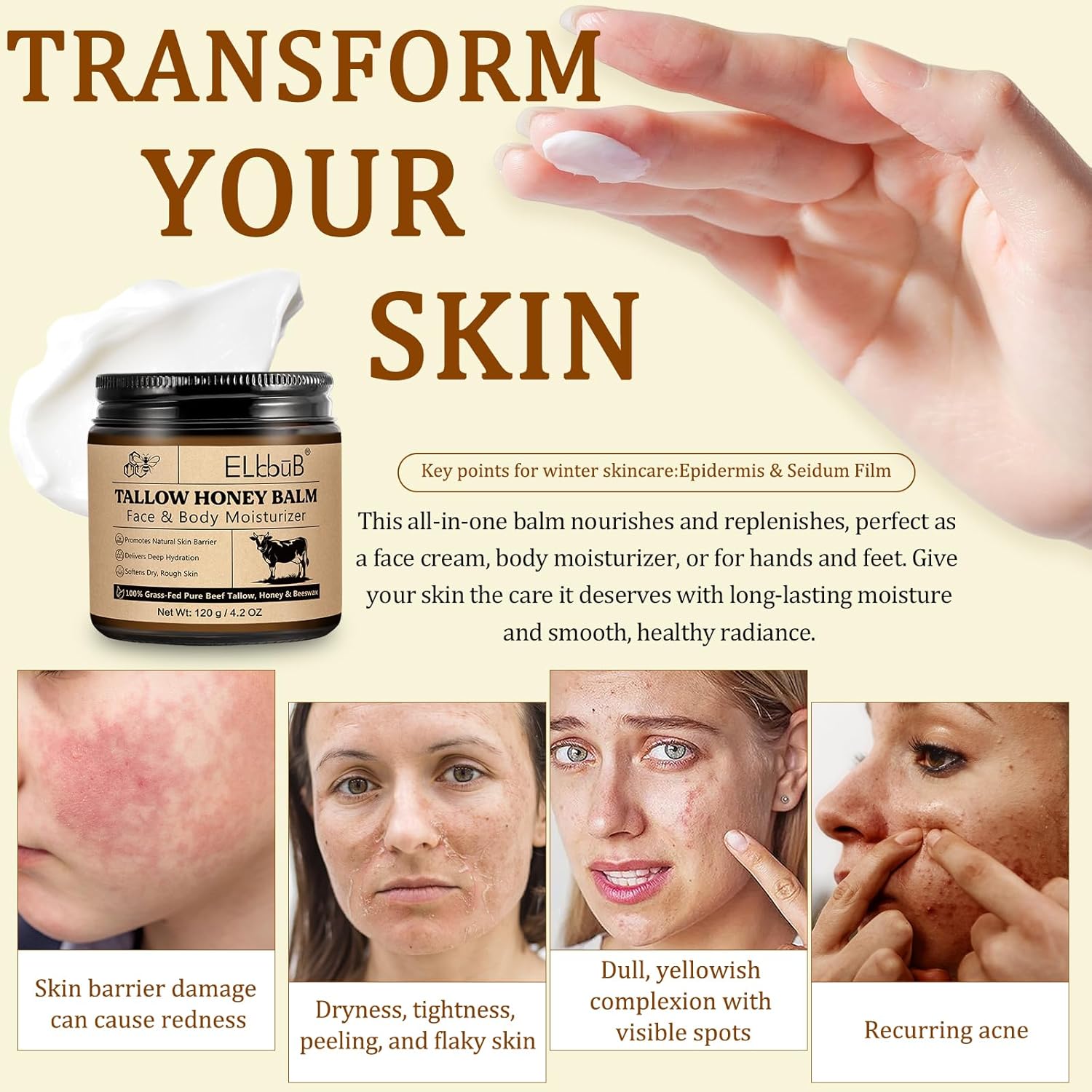 Home » ELBBUB Whipped Tallow Cream for Face & Body – 100% Grass-Fed Beef Tallow, Natural Honey & Beeswax Moisturizer, Deep Hydration & Nourishment, Oil-Free & Unscented, Fast Absorbing