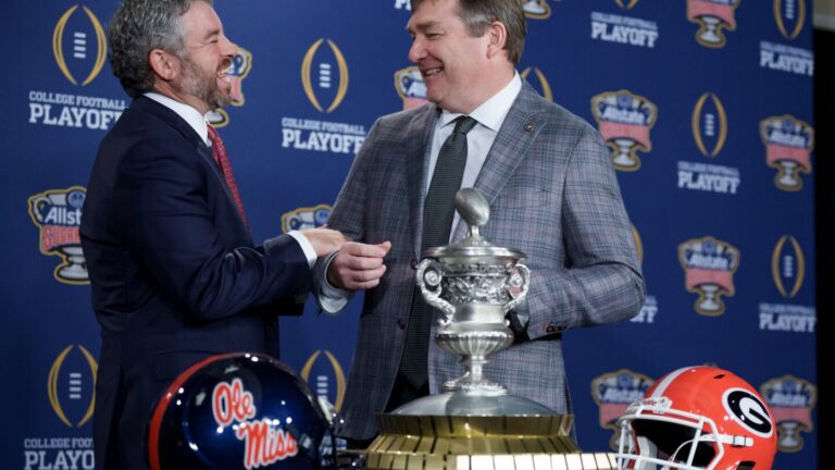 NEW ORLEANS (AP) — Having proved they could win as a favorite without ex-coach Lane Kiffin in the first round of the College Football Playoff, the No. 6 Mississippi Rebels face a tougher test against No. 3 Georgia in a quarterfinal matchup at the Sugar Bowl on Thursday night.