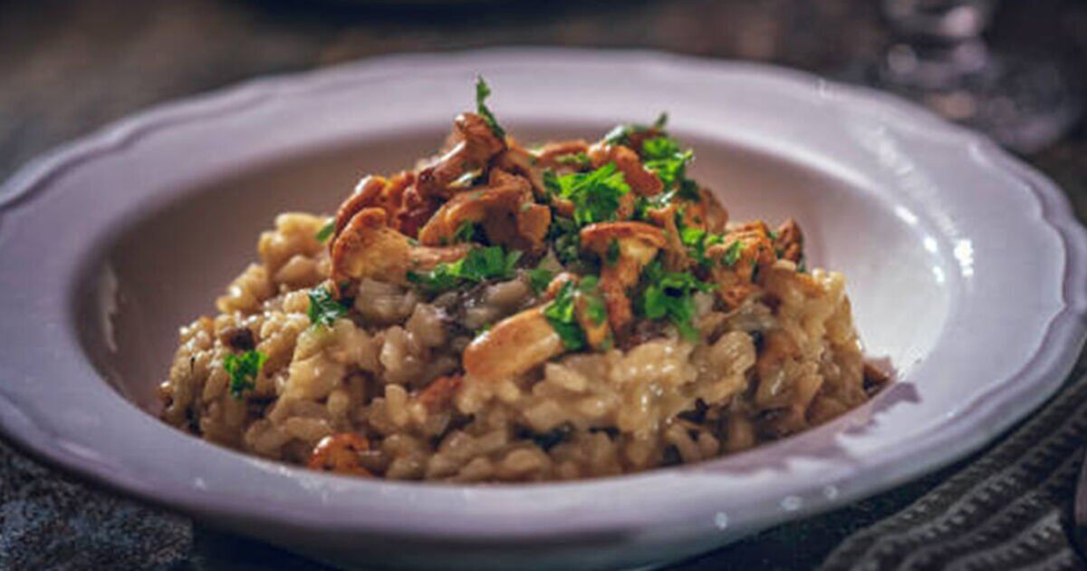 285g mushrooms130g spicy chorizoOne onion, finely choppedTwo garlic cloves, finely chopped300g arborio riceTwo tbsp tomato purée150ml dry white wine1.2 litres chicken stock200g frozen peasTwo tbsp finely grated parmesanTwo tbsp chopped flat-leaf parsley