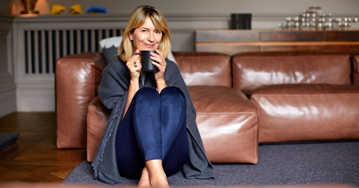 Shot of a mature woman sitting on her living room floor  drinking tea while wrapped in a blanket