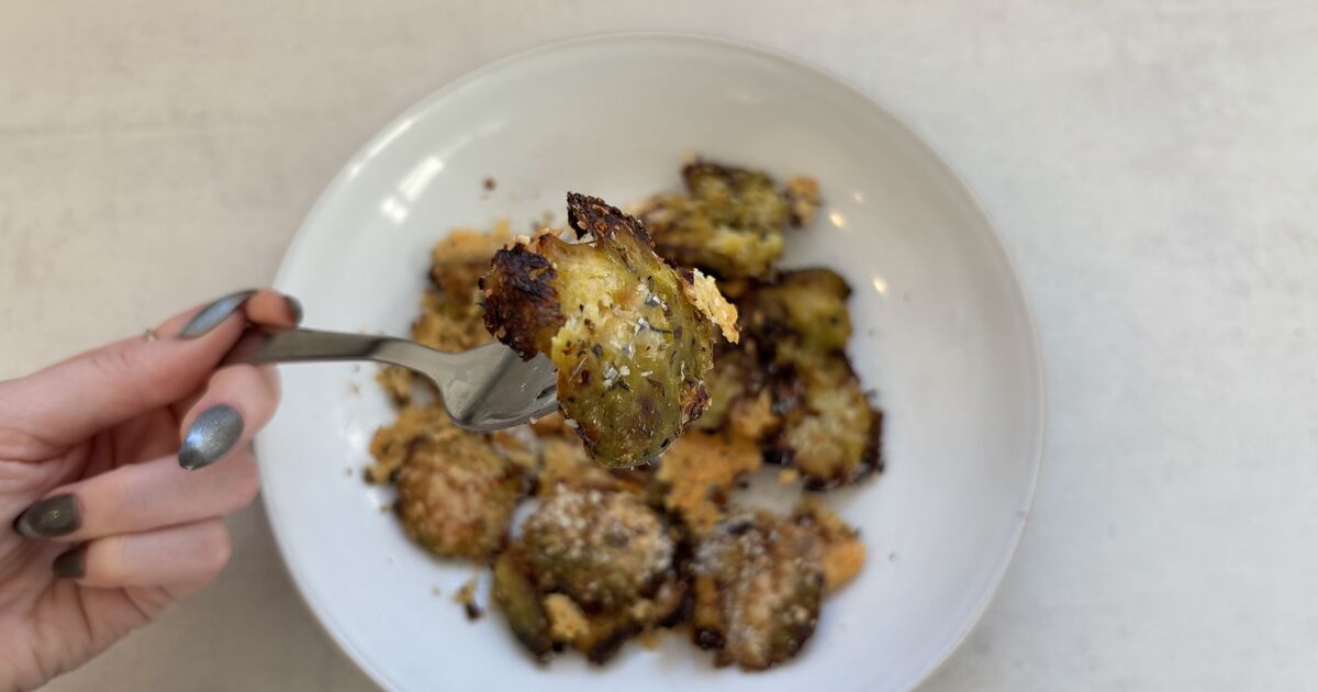 The idea is very similar to smashed potatoes, but with Brussels sprouts instead, using generous amounts of parmesan cheese, oil and seasonings to make them crispy and tasty.