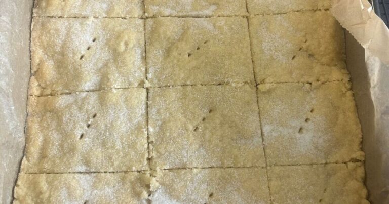 Ensure the mixture is evenly spread, as it won’t bake evenly if not. This can result in shortbread that is slightly underdone or overdone.