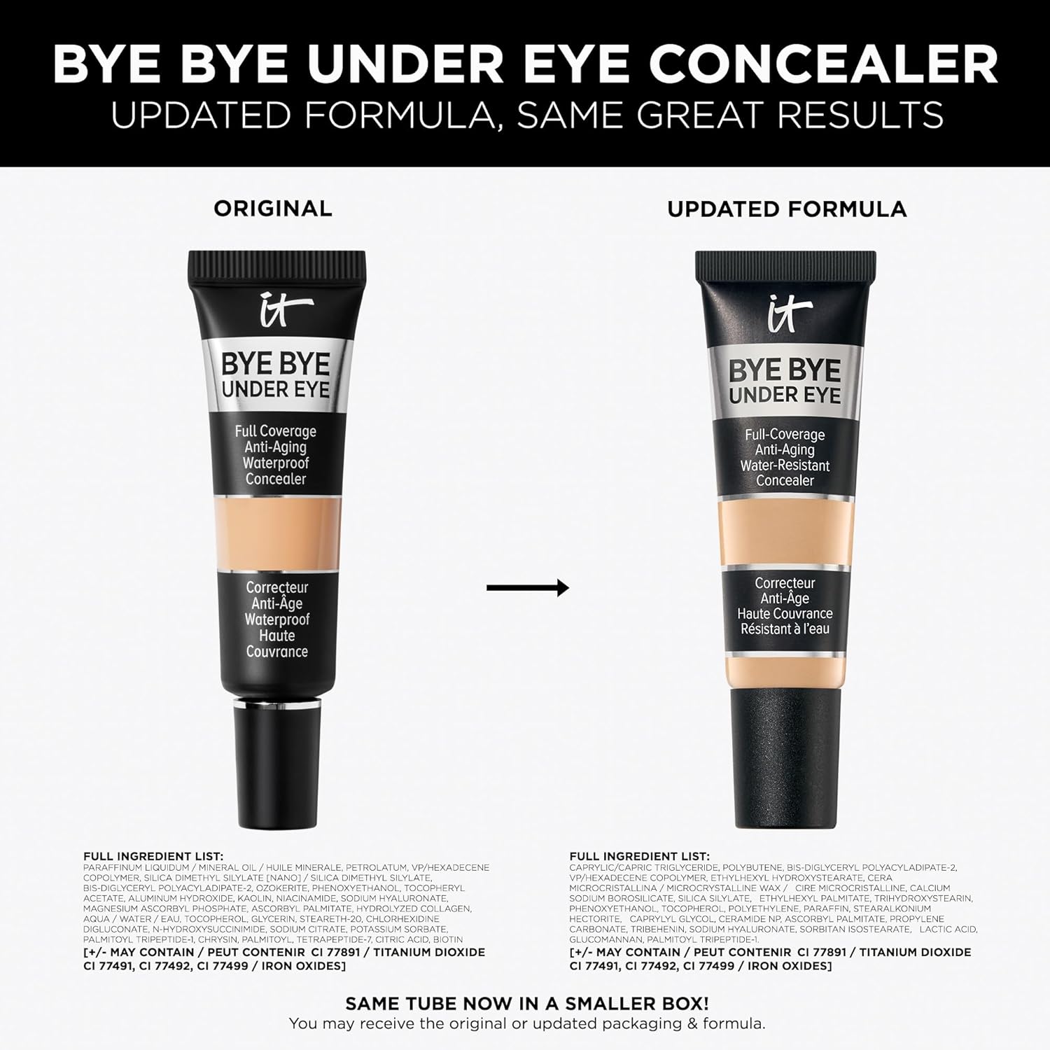 IT Cosmetics Bye Bye Under Eye Concealer – Water-Resistant, 24H Full Coverage Brightening Concealer For Dark Circles, Fine Lines, Redness & Discoloration, Anti-Aging Color Correcting Cream – 0.4 fl oz