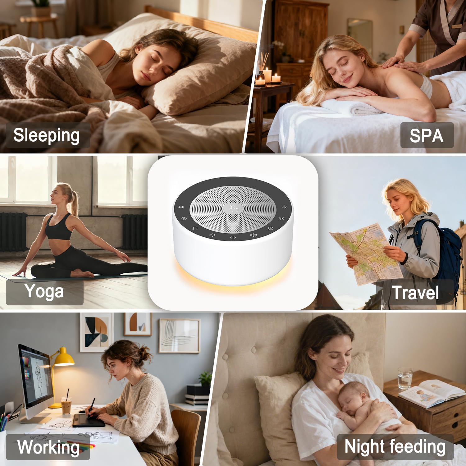 30 HIGH-FIDELITY SOOTHING SOUNDS: White noise, pink noise, brown noise, fan noise, nature sounds and lullabies. With up to 32 volume settings, the Kipcush white noise machine effectively blocks out external noises, helping you and your family immerse themselves in a relaxing environment and improve significantly the quality of sleep.