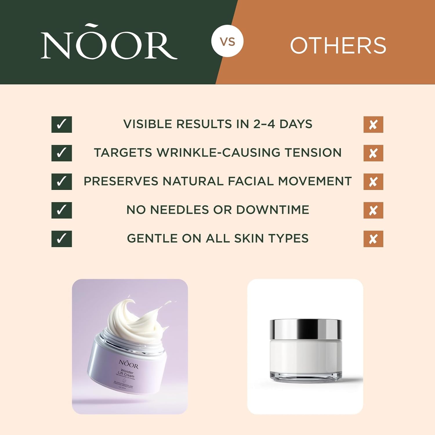 * 8-12 Weeks is all it takes: Our Wonder Lift Cream for Women is specifically formulated to yield results fast. Use it daily, and in just 8-12 weeks, you’ll experience significant wrinkle reduction and more youthful skin.
