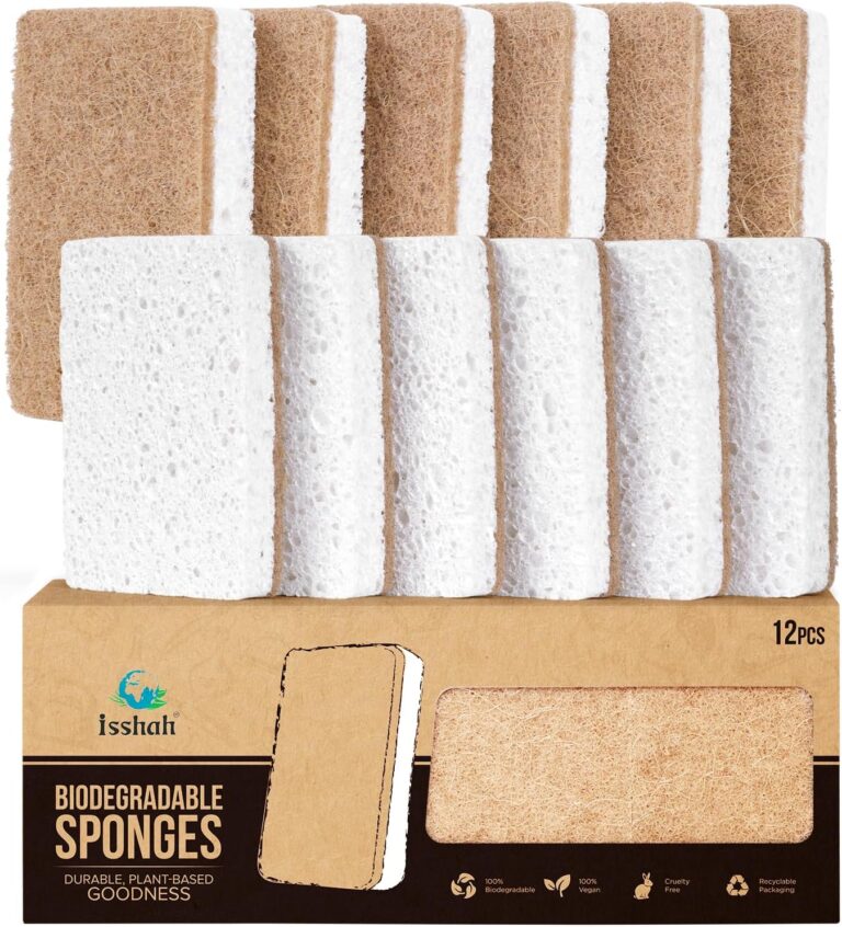 Home » Plant-Based Kitchen Sponges – FSC Certified and PETA Approved, Natural, Eco-Friendly, Biodegradable Sisal Hemp Sponges for Dishes, Cleaning Sponge for Kitchen, Bathroom, Household – 12 Count