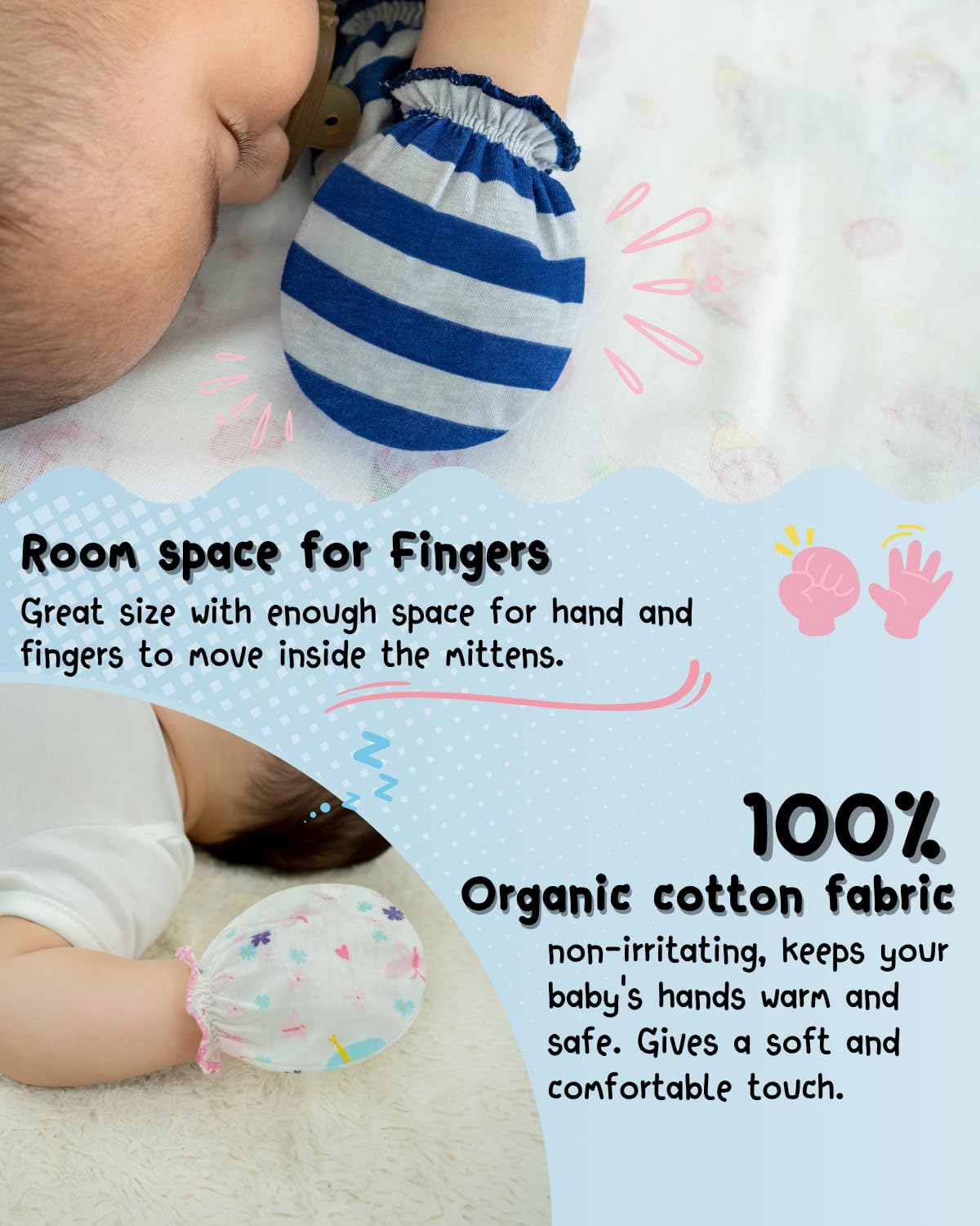 RATIVE Baby Mittens No Scratch Organic Cotton for Newborn 0-6 Months | Baby Essentials Must-Haves for Boys & Girls