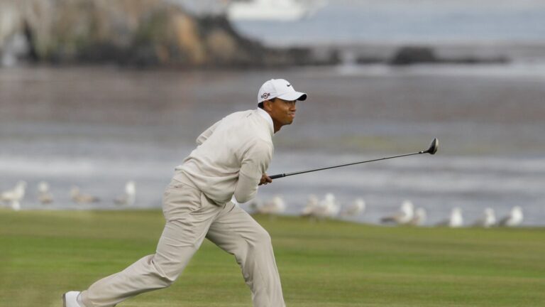 “The 17th hole got redone every other year. This was a new green, the green was rock-hard and the pin was front left. We hit our tee shots right next to each other — hit 3-wood, I hit driver. I hit this 5-iron as hard and as high as I could. It lands by the hole and bounds 25 feet by the hole. He hits this shot way up in the air and it was coming down like a parachute, lands by the cup and bounces 2 feet and stops. I figure he must have hit a 7-iron. I said, ‘Tiger, what club was that?’ He said, ‘That was a little, three-finger 5-iron.’ He just filleted it in there. When I think of him, that’s what I think of. Only one guy could hit that shot.”