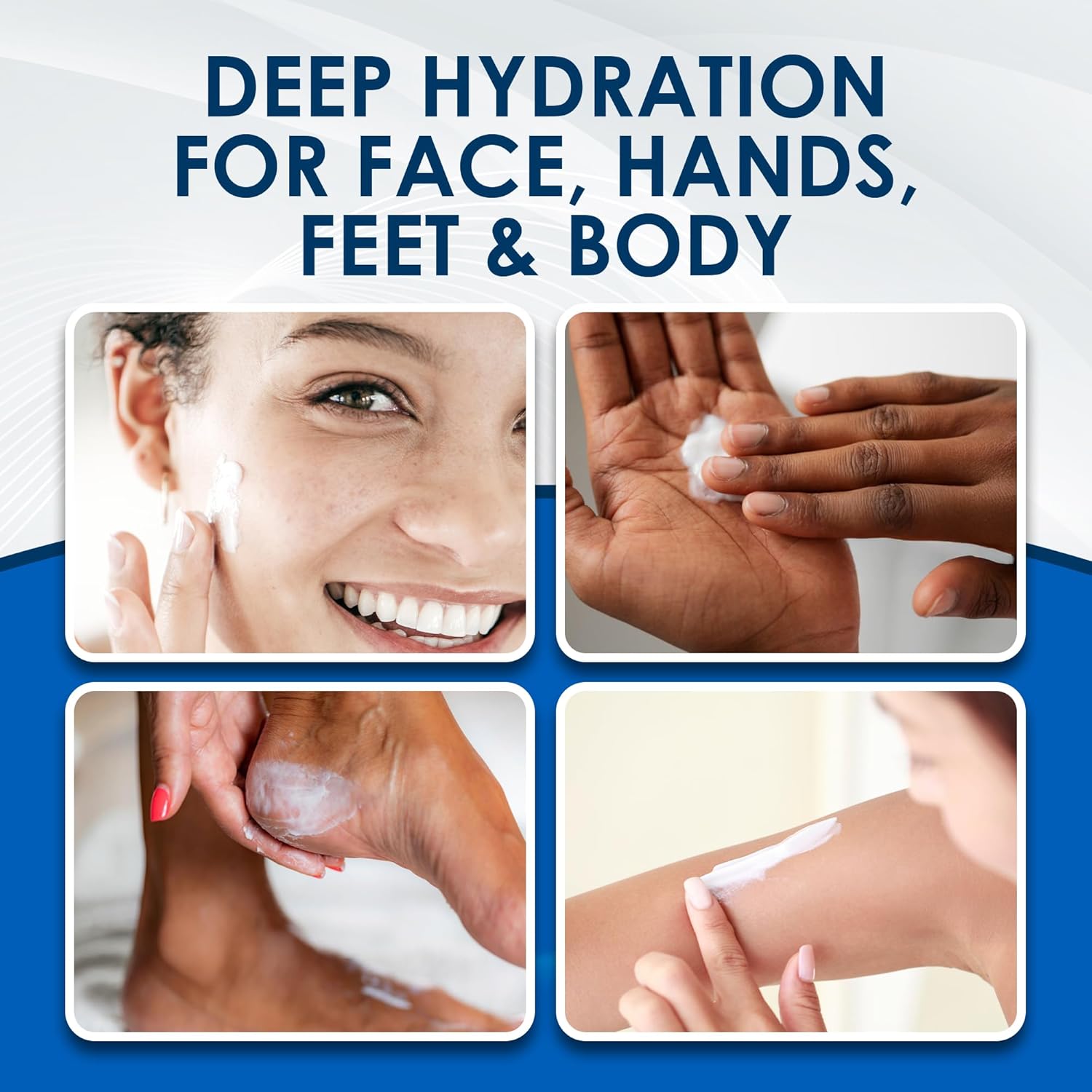 Directions: Apply moisturizer as often as needed to face, hands, feet and body or as directed by a physician. Ideal for the entire family.