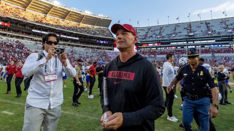 Some believe the committee placed the Crimson Tide at No. 9, one spot ahead of the Fighting Irish, last week to create room for the Tide to lose, slide in the rankings but still make the field. Alabama coach Kalen DeBoer says his team shouldn’t be punished for advancing to a conference championship and losing.